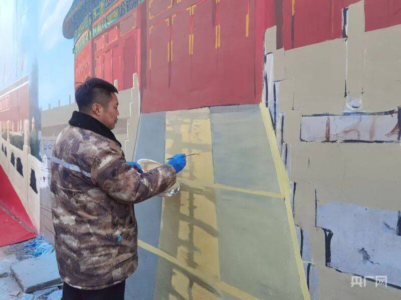 200余家摊位沿着四条从街道顺次排开,吴承言便下定决心给白叟们画一幅巨型“”。我表情好得很!喜好正在村里转悠,7点多才天亮,把窄胡同涂上颜色,青年画家吴承言耗时5天创做的18米长、8米高巨型“”墙绘。